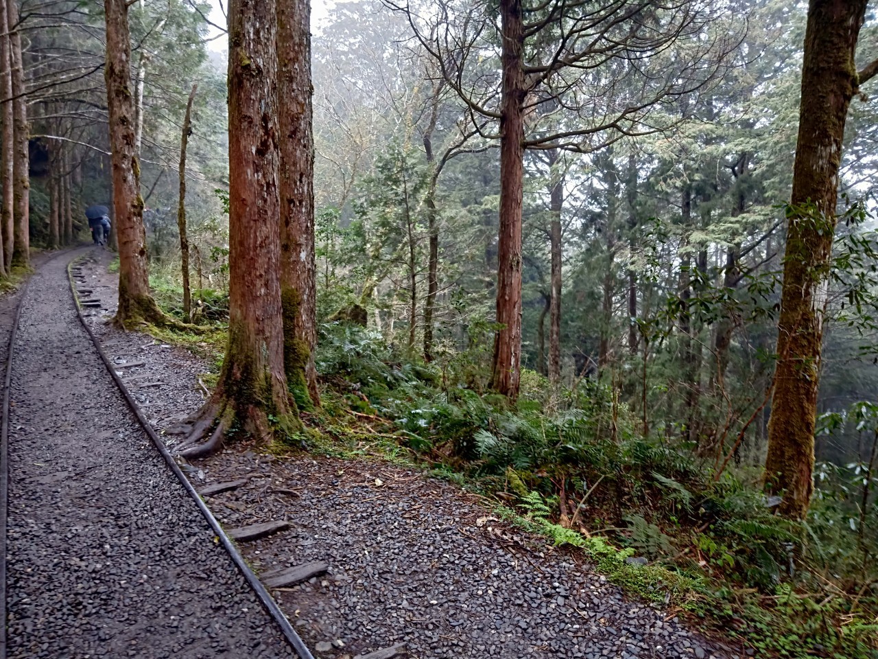 【檜木原始林步道】蜿蜒在古木參天的原始紅檜及扁柏森林裡,沿途或俯或倒的巨木造就不少樹洞奇景,盤根錯節,姿態多端,令人嘖嘖稱奇。橫臥的巨幹蘊含豐富的養分,有些甚至滋養著落在其上的種籽,長出第二代巨木,形成「雙代木」景觀。