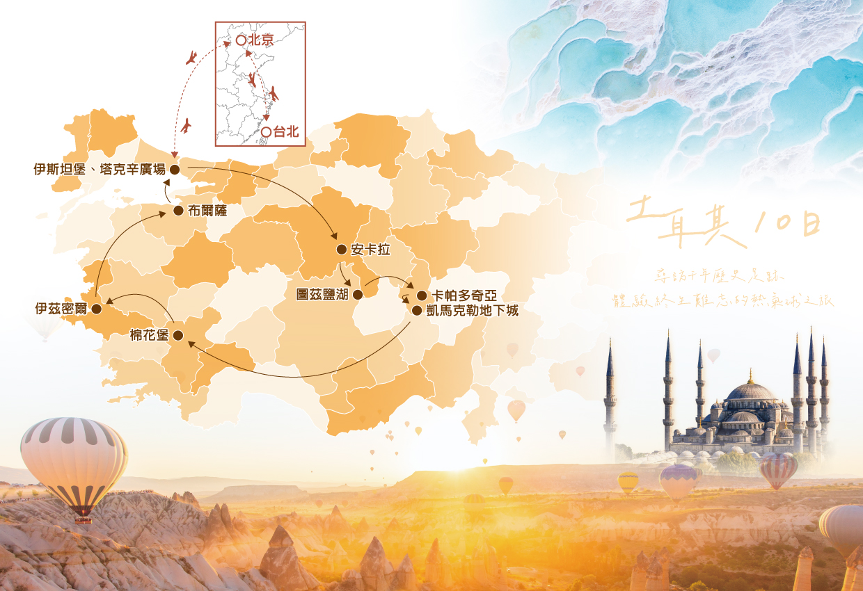 1.    土耳其面積約為台灣22倍大,故每個城市之間的距離稍遠,坐車時間與其他國家相比皆為較長,請各貴賓多包涵。