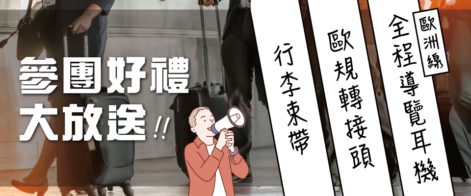 3.重要提醒:因近來歐洲遊覽車偷竊案頻傳,為保障旅客財物安全,請旅客離開遊覽車時,貴重物品請務必隨身帶下車,盡可能不要將任何物品置留在車上,更不可將物品放置車上過夜。遊覽車司機不負保管責任,若因此有任何財物損失,旅客須自行承擔風險。
