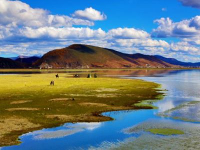 【納帕海】位於雲南省迪慶藏族自治州的香格里拉縣。建立於1984年。總面積31.25平方公里,海拔3266米,湖泊積水面積660平方公里。屬濕地生態類型保護區,主要保護對象為高原季節性湖泊、沼澤草甸,是黑頸鶴等候鳥越冬棲息地。這裡是中甸縣最大的草原,也是最富於高原特色的風景區之一。由於藏民的悉心愛護,每當秋季來臨,許多飛禽便光顧這裡,如黑頸鶴、黃鴨、斑頭雁在草原上空高飛低旋,情景頗惹心喜愛。