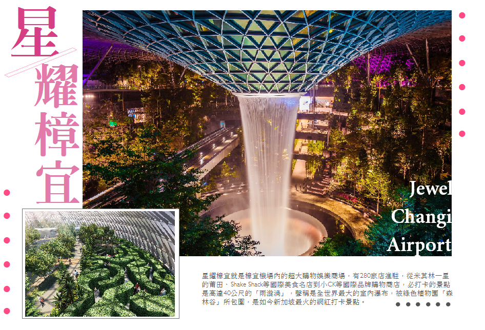 ¡i¦Û¥Ñ°ÑÆ[¬PÄ£¼Ì©y¡j¬PÄ£¼Ì©y(Jewel Changi Airport)¾Ö¦³¿W¯SªºªÆ³»¬Á¼þ«Î³»¡A°£¤F³Ì¥O¤H¼Û¬°Æ[¤îªºªº³y´º—¡u´ËªL¨¦Forest Valley¡v©M¡u«Bºx´õRain Vortex¡v¡A¥H«Ç¤ºÂr¥¬©MºñÀJ´Óª«¨«¹D¤ÞÃz¥þ²yªº¬PÄ£¼Ì©y¡AÅé²{¤F·s¥[©Y¡u«°¥«ªá¶é¡vªº¬üÅA¡I
