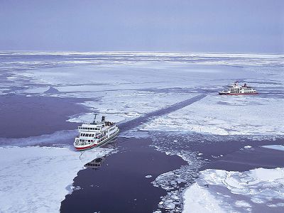 【破冰船】每年約1月中旬至3月下旬開航,巡航於被冰所覆蓋著的鄂霍次克海上。無懼於厚達1m的冰層,巡洋船將層層的冰打碎後前進,氣勢十足。如果站在甲板上更是充滿臨場感。在全世界最南端的流冰世界裡,也許您可以看到在流冰上進行日光浴的海豹,或是遇到振翅高飛的白尾鷲或大鷲等。建議您不妨帶著望眼鏡前來觀賞。