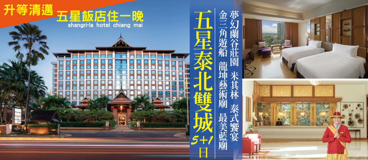 住宿: Shangri-La Hotel(為主)或 Veranda 或 Melia 或 Smile Lanna 恕無法指定飯店