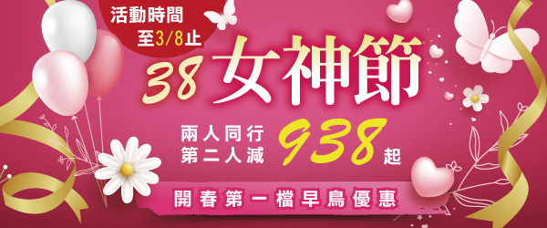 ★開春第一檔|早鳥優惠 ★女神節限定|揪團最划算 ★閨蜜出遊・媽咪同遊都適用