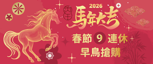 馬年迎好運! 春節 9 連休,早鳥優惠全面開搶!