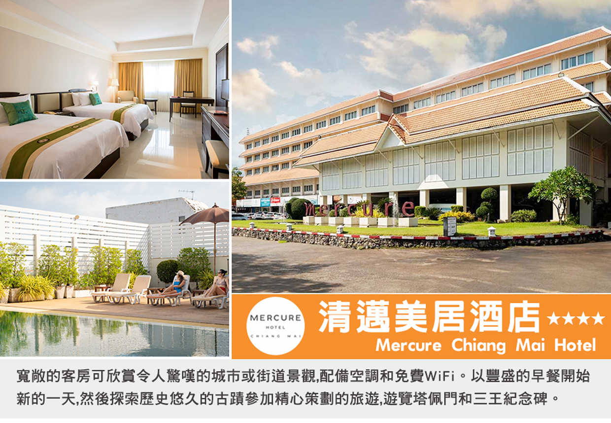 今日搭乘豪華客機,飛往泰國第二大城市─【清邁】。清邁建成至今雖有七百多年,可惜許多古蹟卻多有殘破,同時亦還保留有許多的文化遺產,又有”藝術建築之寶殿堂”的稱謂。城內名勝古蹟遍佈,林蔭小街,曲徑幽深,廟宇,寶塔林立,護城河水清見魚游,碧波盪漾,煞是宜人。