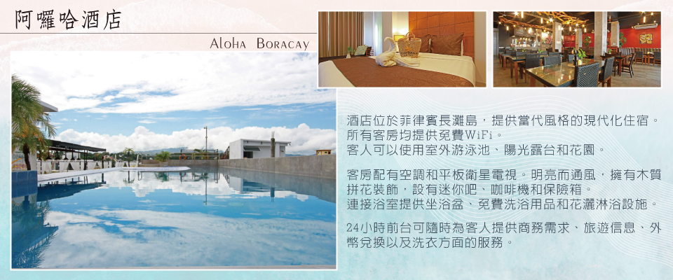 今天來享受一下沒有 Morning Call 叫醒的日子,長灘島的漸層海水,長灘島的綿密白紗,長灘島的夕陽美景,長灘島的紀念品,長灘島的水上活動,長灘島的夜生活都值得你一再品味。