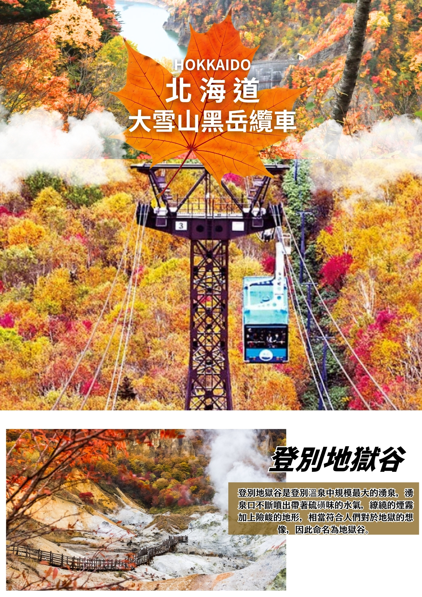 飯店→白金青池→富田農場→途經∼美瑛拼布之路→日本最北端纜車∼大雪山黑岳纜車(楓葉) (含纜車來回)→飯店
