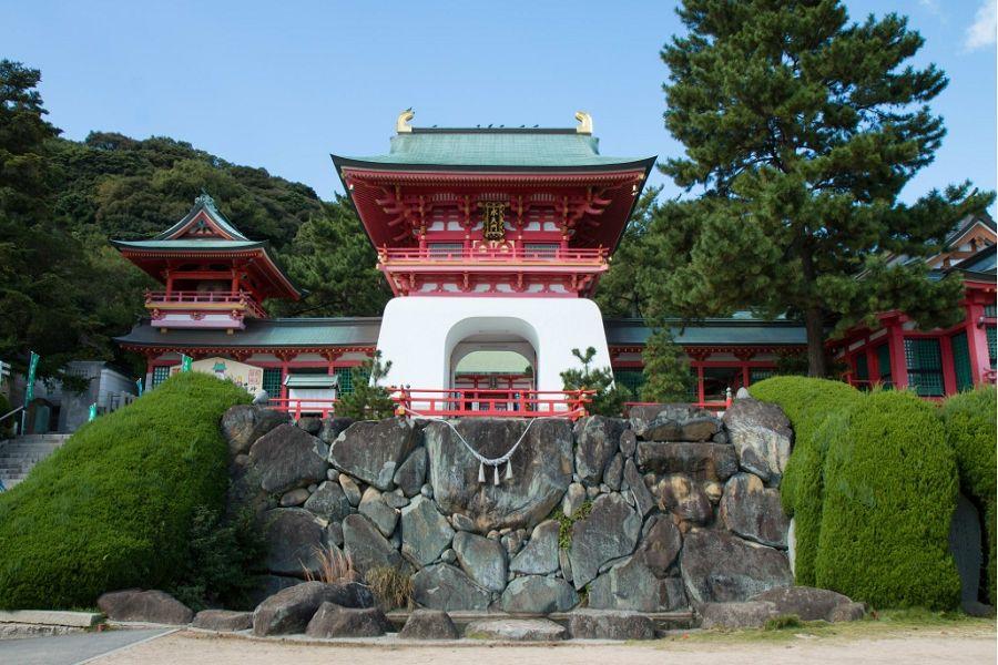 【赤間神社】是一座為紀念源平壇之浦合戰中被二位尼抱著投海的幼帝安德天皇而建造的神社。 神社面向關門海峽,採用白牆與朱漆水天門搭配的設計。 神社擁有平家一門之墓、小泉八雲怪談中著名的無耳芳一相關的芳一堂及展示珍貴資料的寶物殿等多處文化景觀。 每年5月3日,上臈參拜中赤間神宮都會成為祭奠知名先帝的主會場。