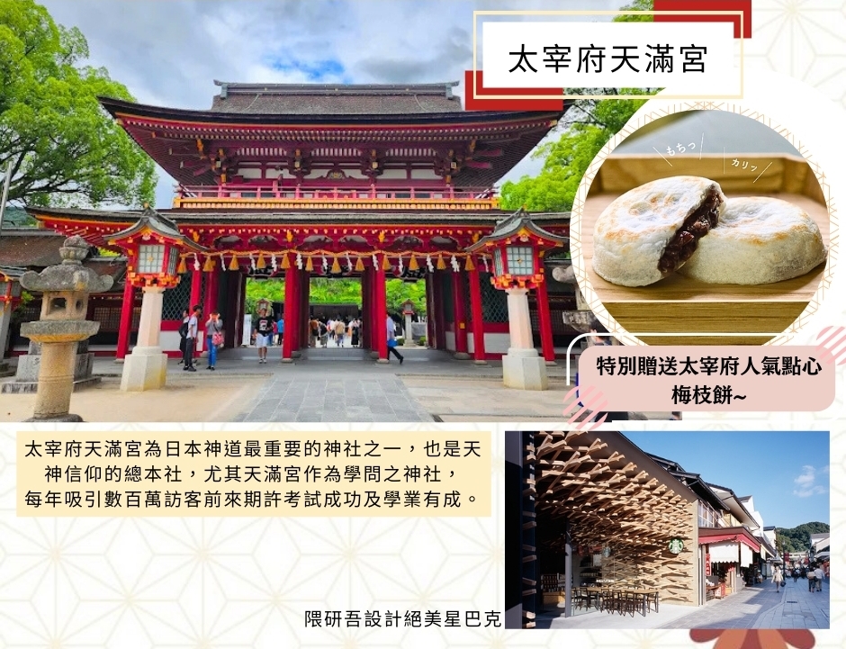 日本學問之神∼太宰府天滿宮*贈送梅枝餅*~知名建築師隈研吾設計~星巴克→免稅店→LaLaport福岡→柳川遊船體驗→飯店