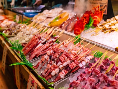 【錦市場】位於京都市中心,被稱為「京都的廚房」,是一條擁有四百多年歷史的傳統市場街。沿路聚集了多家老舖與特色小店,販售從新鮮海產、醃漬物、京都蔬菜到甜點、伴手禮等各式京都名物。漫步其間不僅能品嚐現做小吃,還能感受在地生活氛圍與職人文化。