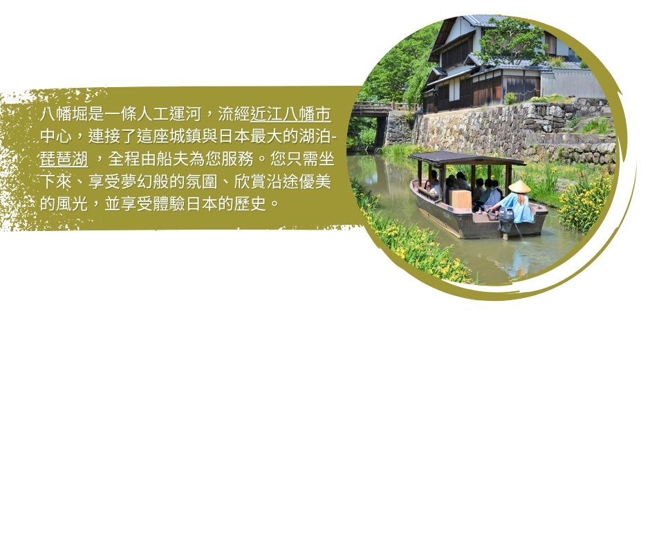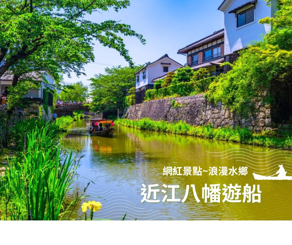 【近江八幡水鄉遊船】來到近江八幡老街散策,街道兩旁都是保存完整的古老日式房舍,河岸兩旁的枯枝,更充滿了歷史文化的滄桑感,在這日本威尼斯的橋水之間,享受微風迎面吹拂,周邊古色古鄉的景緻。