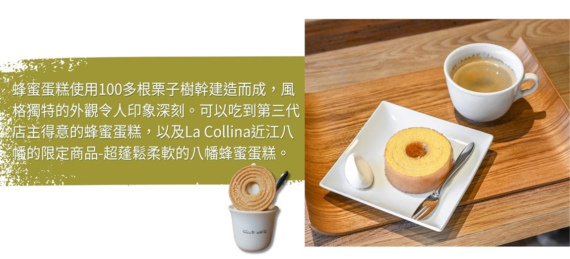 【La Collina近江八幡】La Collina近江八幡是發源於滋賀縣近江八幡的老字號甜點製作商TANEYA品牌的旗艦店,是一處大自然與甜點美食完美融合的設施。屋頂是小山丘的形狀,連上面也全部都種了綠草,建築獨具特色。除了可以自費品嚐到他們引以為傲的年輪蛋糕外,還是個可以放鬆身心靈的好地方,宛如一座充滿綠意的童話樂園。